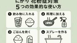 にがり 花粉症 対策を実践 効果的な使い方5選をまとめました。つらい花粉症の季節、薬に頼りすぎる前に試してみたいのが「にがり」を活用したセルフケアです。にがりに豊富に含まれるマグネシウムには、粘膜の健康を維持し、アレルギー反応を抑制する効果...